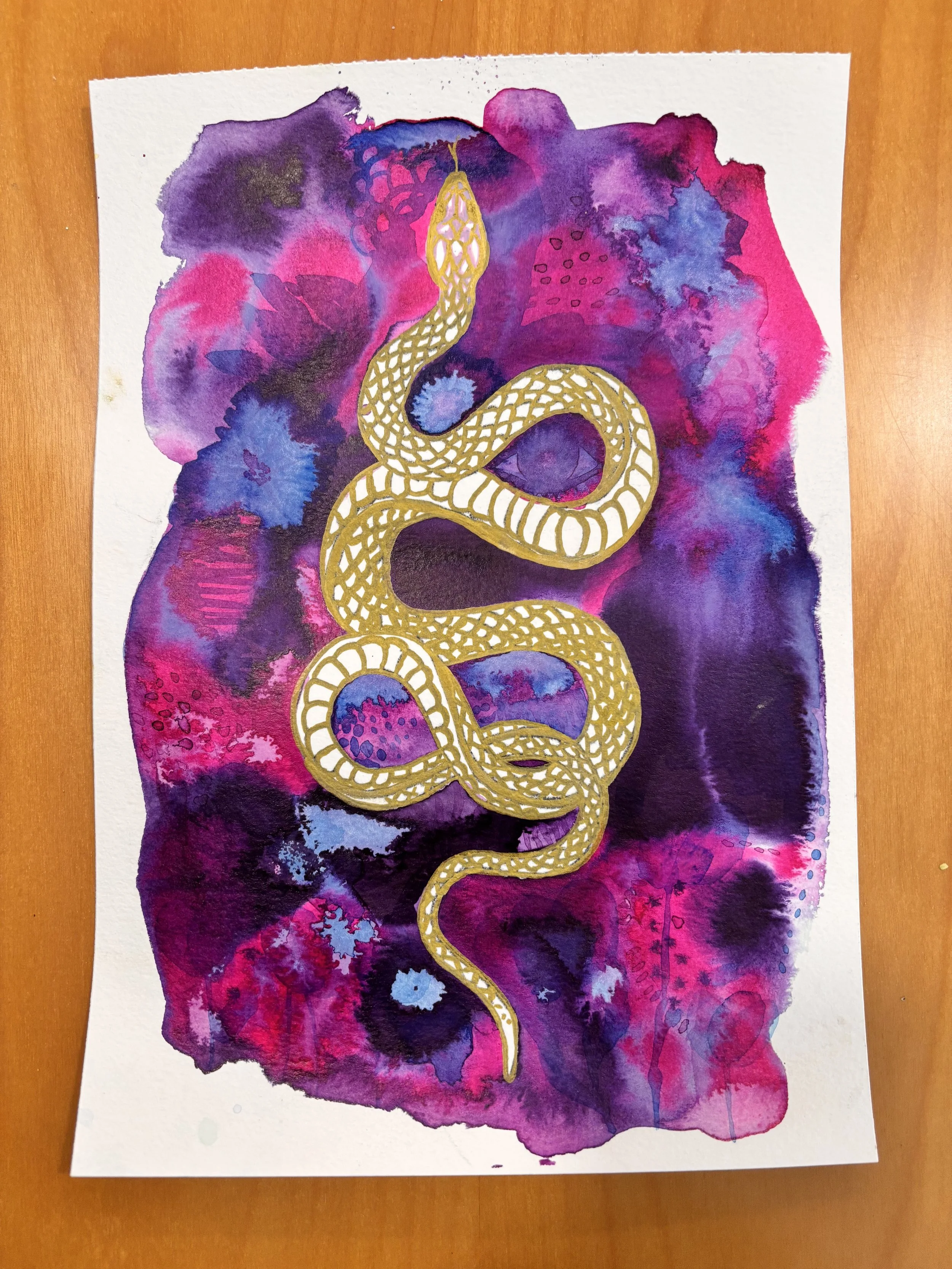 Este mes estoy dibujando serpientes. Aparecen una y otra vez, cambiando de forma, de ritmo, de trazo. No busco entenderlas, solo crearlas y descubrir, a través del proceso creativo, lo que tenga que venir