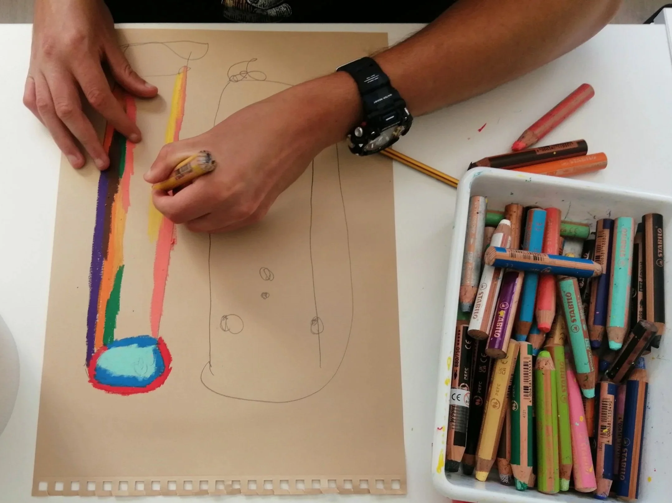 El proceso terapéutico desde estas dos miradas se da a través de la experiencia de creación artística en el presente, dentro de un espacio seguro que permite expresar, dar forma y observar el mundo interno.